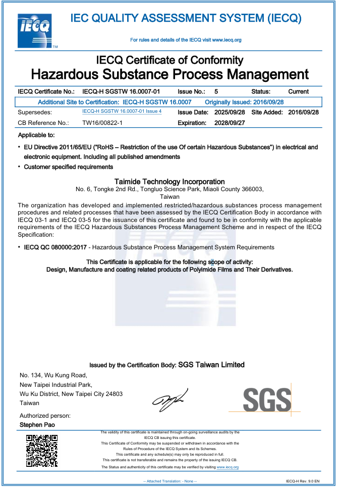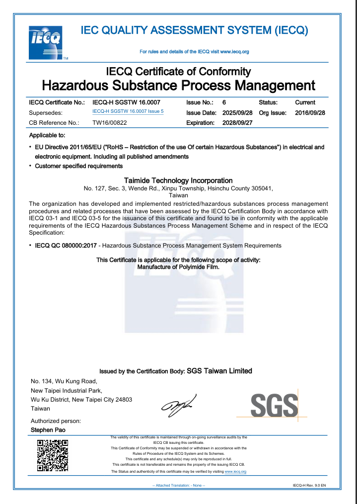IATF 16949 / ISO 9001 / IECQ QC080000 (Causeway Factory)